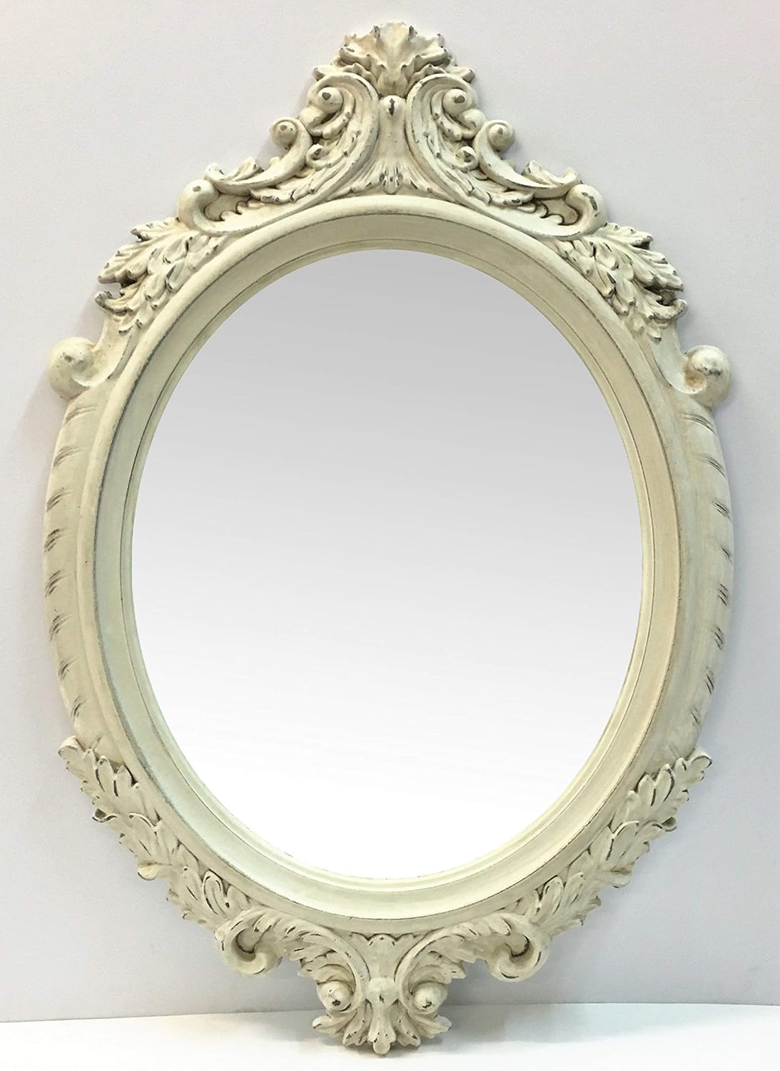 Specchio Ovale Con Cornice Lavorata In Pasta Di Legnocon
