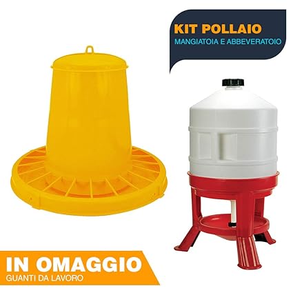Mangiatoia Capienza Kg810 Per Polli Abbeveratoio Da Lt10 Con Manico E Sostegno Per Polli