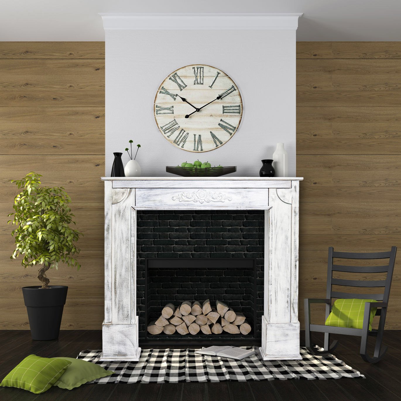 Cornice In Legno Shabby Chic Con Focolare Elettrico Che Crea