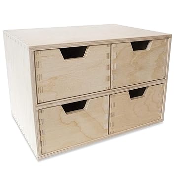Creative Deco Mini Cassettiera Legno 4 Cassetti 285 X 20 X 19 Cm Scatola Armadio Di Stoccaggio Compensato Non Verniciato Perfetto Per