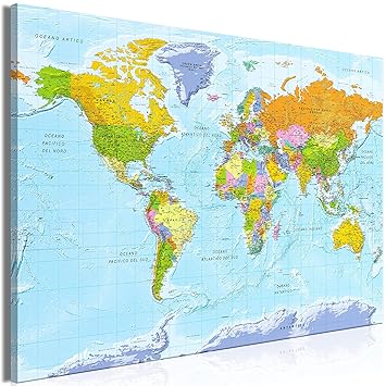 Murando Quadro Mappamondo 120x80 Cm 1 Pezzo Stampa Su Tela