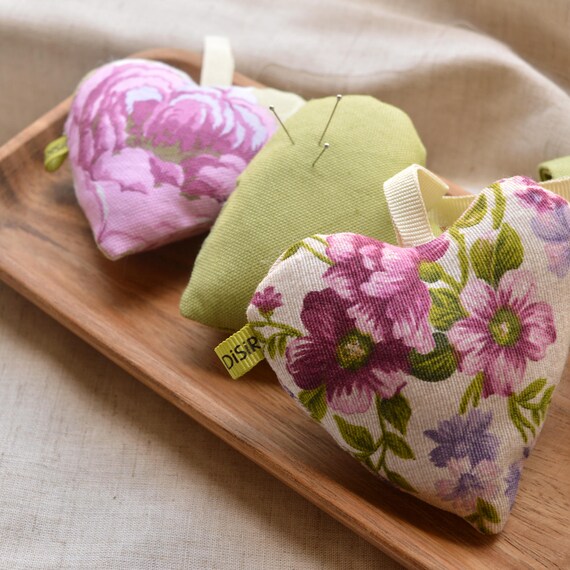 Set 3 Cuori Di Stoffa Imbottiti Textile Heart Puntaspilli Profuma Biancheria Ornamento In Puro Cotone Prodotto Green