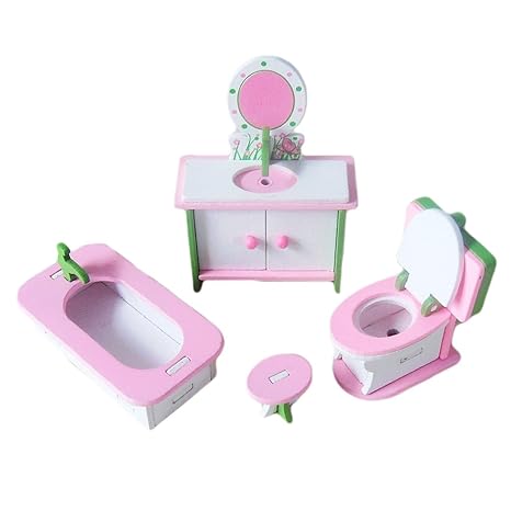 Beetest Mini Dollhouse Di Legno Mobili Bagno Per Case Di Barbie Per Bambini Giocattolo