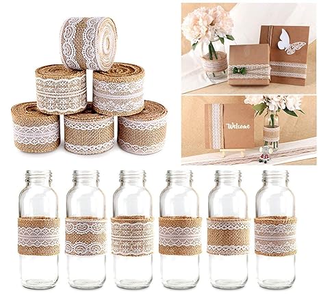 Luluna 6 Pezzi Nastro Di Iuta Con Pizzo Per Diy Decorazioni Di Nozze Vasi E Bottiglie 200mm X 50mm Nastro Iuta Con Stile Rurale Rotoli Di Iuta E Pizzo