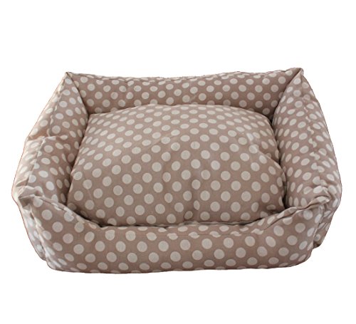 Cuccia Cuccetta Cuscino Per Animali Cani Gatti Colore Beige Pois Biancoforma Rettangolare Lunghezza 60 Cm X Larghezza 50 Cm X Altezza 18 Cm