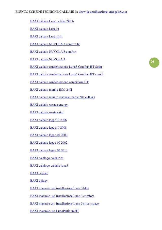 Manuale baxi luna 3 comfort Caratteristiche tecniche caldaia modello luna 3 comfort in categoria 250 fi 310 fi 1310 fi mv.
