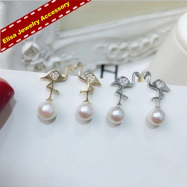Acquista S925 Sterling Silver Flamingo Perle Orecchini Impostazioni Donne Gioielli Fai Da Te Orecchini Porta Orecchini Non Comprese Le Perle A