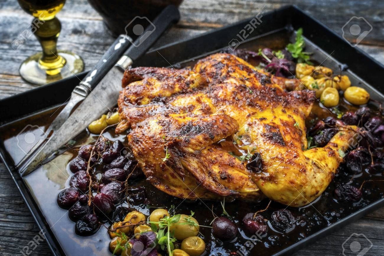 Spatchcocked Barbecue Chicken Al Mattone Chili Stock Image