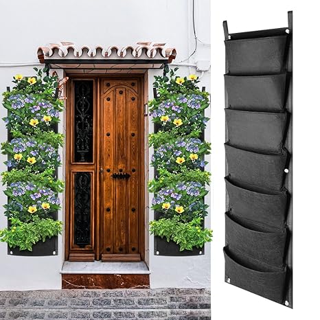 Luoem 7 Tasca Verticale Appeso Fioriere Pocket Giardino Verticale Parete Outdoor Indoor Herb Fioriera E Borse