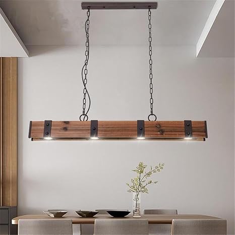 Lampadario Lampadario A Led In Legno Retrò Industriale