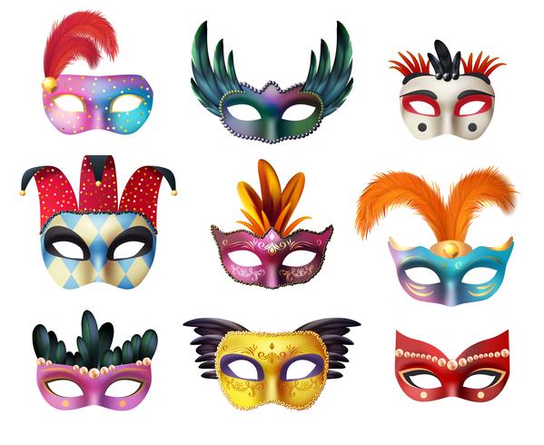 Insieme Realistico Delle Maschere Di Carnevale Di Carnevale