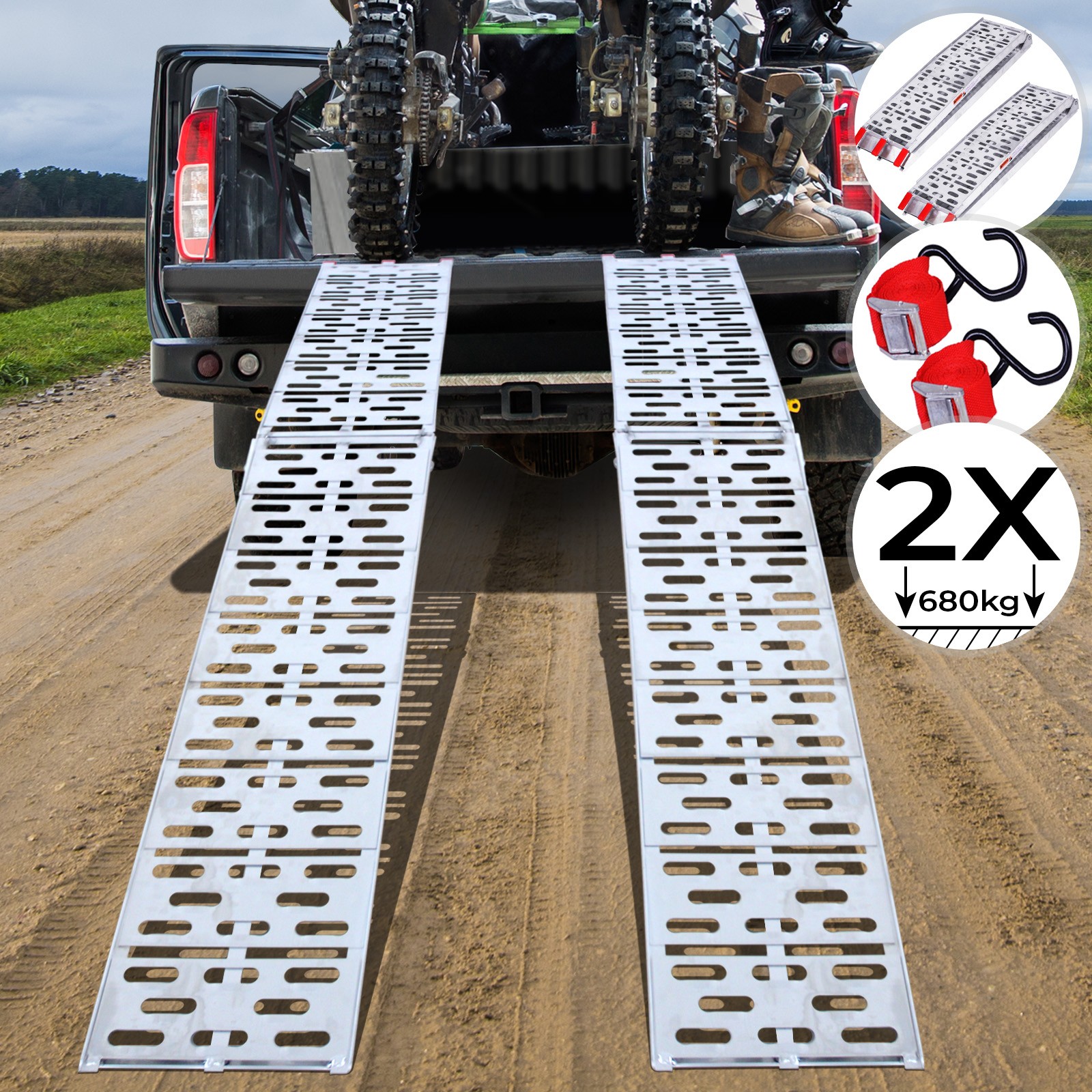 Dettagli Su Rampa Di Carico Di Accesso Set Da 2 Moto E Quad Pieghevole Max 680kg Alluminio
