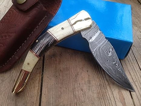 Damascus Faire Trade Coltello Pieghevole Con Lama Seghettata