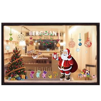 Umipubo Natale Adesivi Porta Natale Vetrofanie Addobbi Rimovibile Adesivi Statico Fai Da Te Finestra Sticker Decorazione Babbo Natale Vetrina