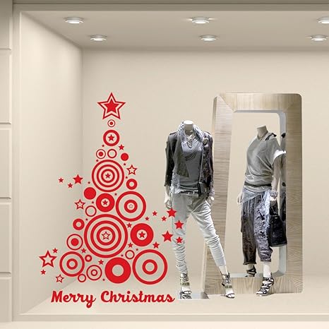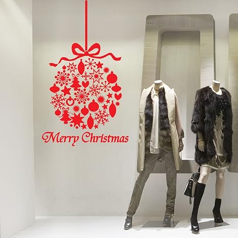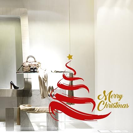 Sodialr Stickers Murali Frasi Natale Pvc Vetrofanie Display Rimovibile Adesivi Murali Finestra Decorazione Vetrina Wallpaper Rosso