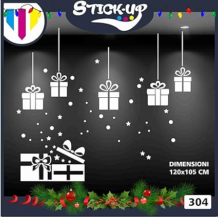 Vetrofanie Natale Adesivi Natale Pacchi Regalo Pendenti