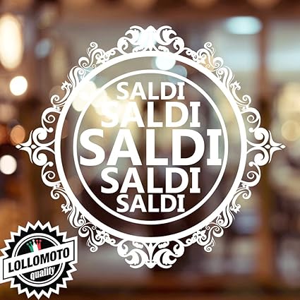 2x Adesivi Saldi Cerchio Decorato Vetrofanie Allestimento Vetrine Stickers Design Decal Decorazioni Intagliati Bianco Lucido