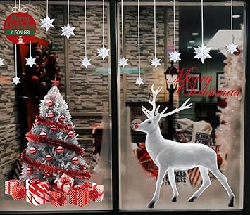 Adesivi Vetrofanie Natale Winomo Adesivo Finestra Per Festa Di Natale Con Renna E Albero E Lettere