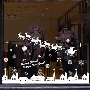 Adesivi Vetrofanie Natale Winomo Adesivo Finestra Per Festa Di Natale Con Renna E Lettere