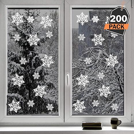 Kompanion Set Da 200 Pezzi Vetrofanie Adesivi Di Natale A Forma Di Fiocco Di Neve Decora La Tue Finestre Con Gli Adesivi A Tema Natalizio Invernale